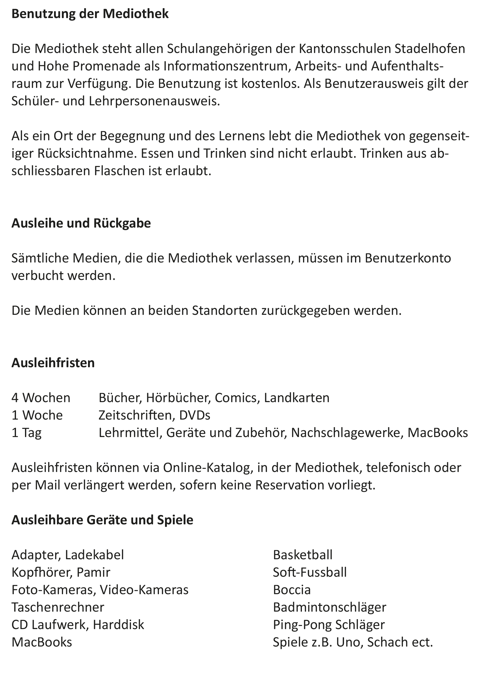 - Auf Anfrage der Lehrpersonen Handapparate und Zusammenstellen von Infomaterial zu verschiedenen Themen