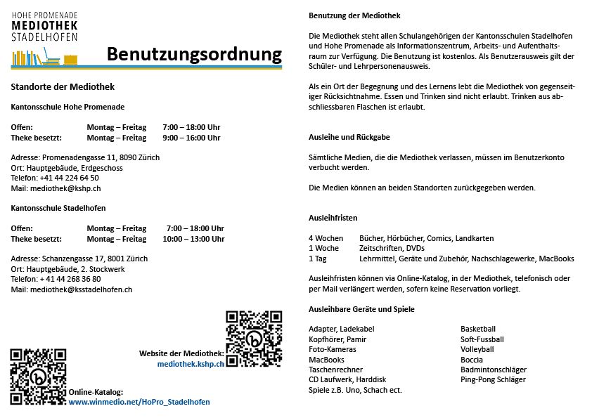 Angaben zur Benutzung der Mediothek