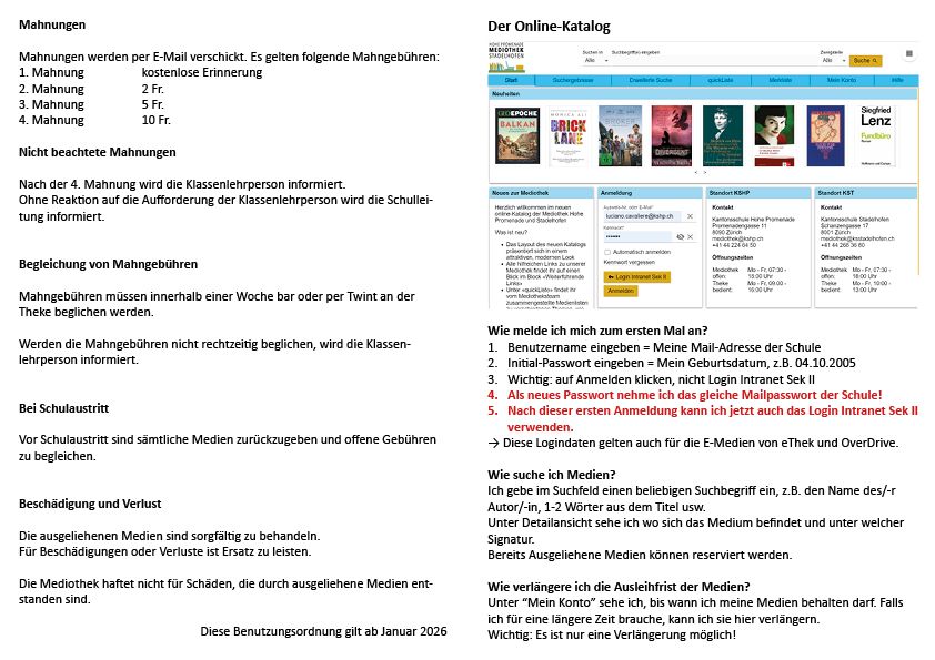 - Auf Anfrage der Lehrpersonen Handapparate und Zusammenstellen von Infomaterial zu verschiedenen Themen